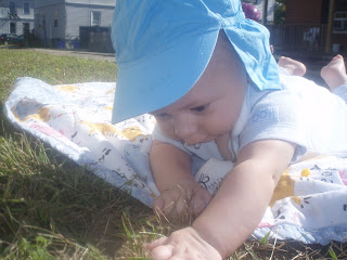 ...has basically made the Mommy-beast a permanent fixture on the living room floor; making an ass of herself with constant utterances of "Come on buddy, you can do it! Come on over and see mommy!" while he yells indignantly at the floor for not doing the job for him. He's soooo close to crawling we can both taste it, and the suspense is killing both of us. Honestly, I think it's only killing me; I'm fairly convinced he already does it every single time my back is turned and he's having a helluva time keeping it to himself and laughing his ass off to himself every time I get down there on all fours with my silly words of encouragement...